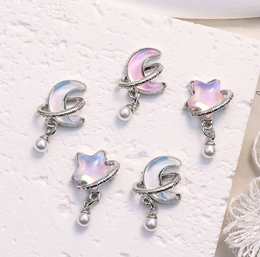Moon and Star with Pearl Dangle
