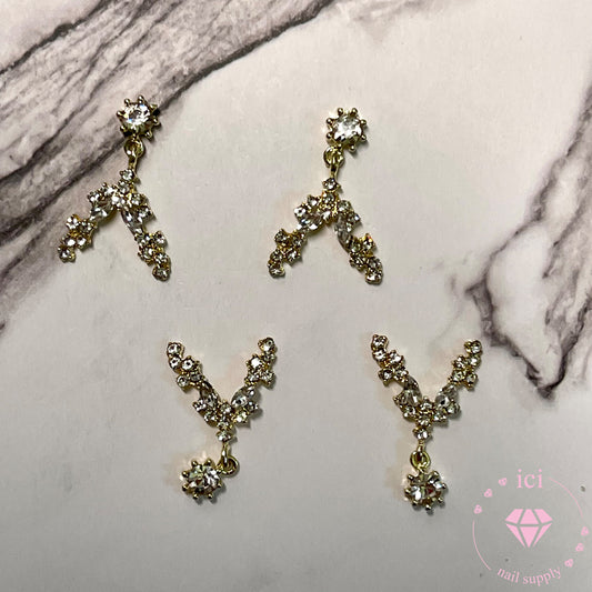 Full Nail V Charm with Dangle - Crystal