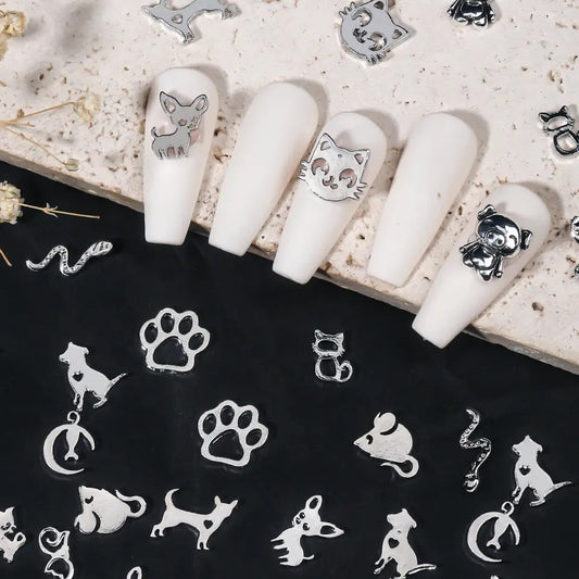 Heart Rhinestone with Silver Outline - Black